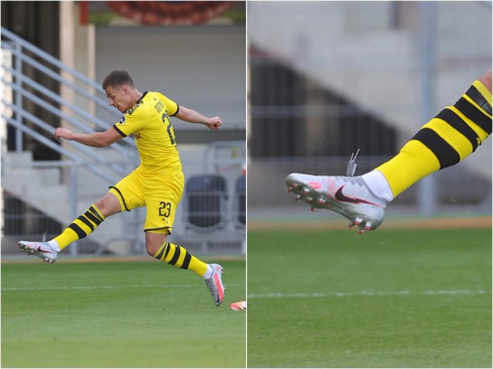 随着耐克推出全新“Neighbourhood Pack”套装,德甲各队阵中的耐克签约球员纷纷换上这双新战靴。还是在这场多特蒙德客场大胜帕德博恩的比赛,除了索尔根·阿扎尔外,队中另一位球员马特乌·莫雷也上脚了该套装中的新战靴,只不过他选择的是Phantom VSN II Elite DF。