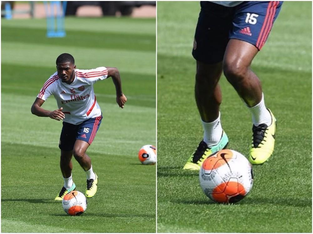 除了梅特兰-奈尔斯外,阿森纳另一位球员在上周的训练中也选择上脚Nike CTR360系列战靴。与梅特兰-奈尔斯一样,霍尔丁在训练中选择了CTR360系列,只不过他选择的是拥有“白/红/黑”配色的二代产品——CTR360 Maestri II。