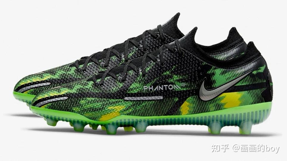 还有一款AG鞋钉的,适合人工草地或者较软的草地。采用了更贴合的传统低帮鞋领, 人字型凹槽鞋钉设计,能更好地多向转身和变向。(16)耐克Nike Phantom GT2 AG-PRO