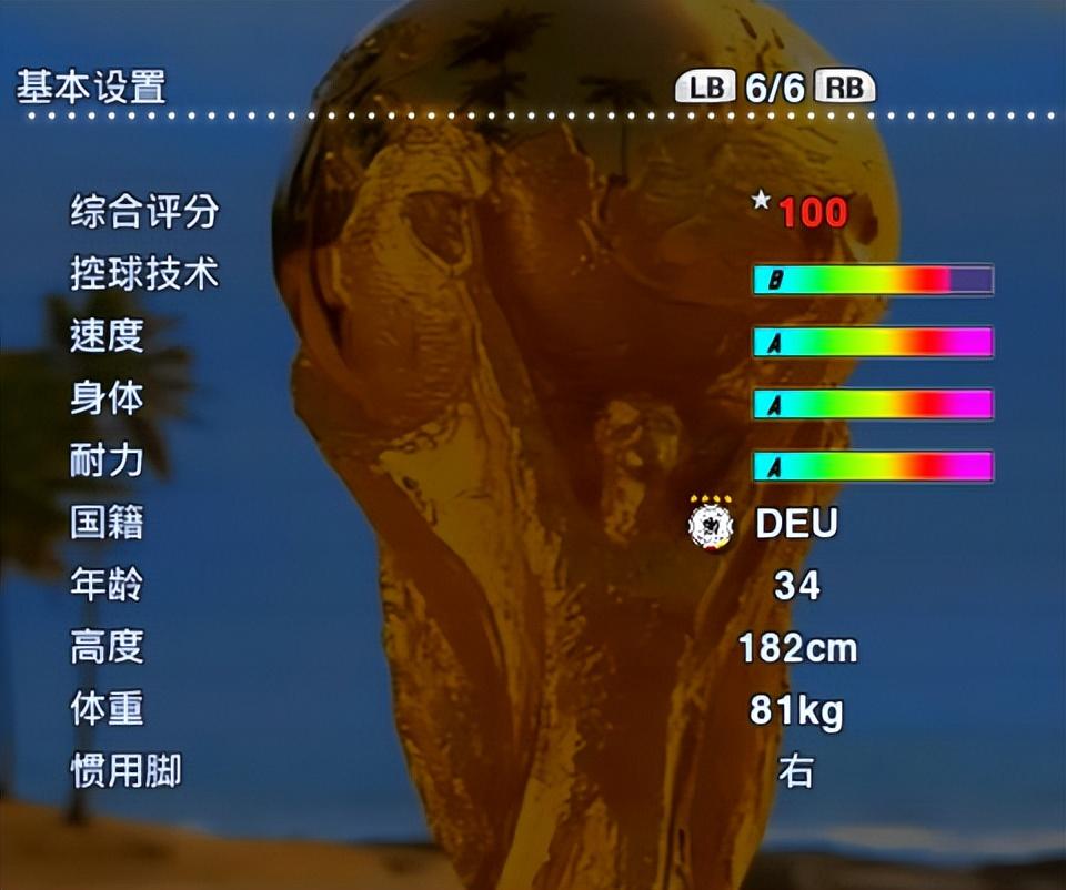 游戏里克洛泽隶属经典德国,身披11号战袍,总评值为100,常用来攻城略地的头球数值也达到95高分。