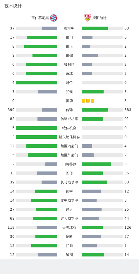 直播吧5月4日讯 在本轮德甲联赛,拜仁客场1-3不敌斯图加特,以下为双方全场数据对比: