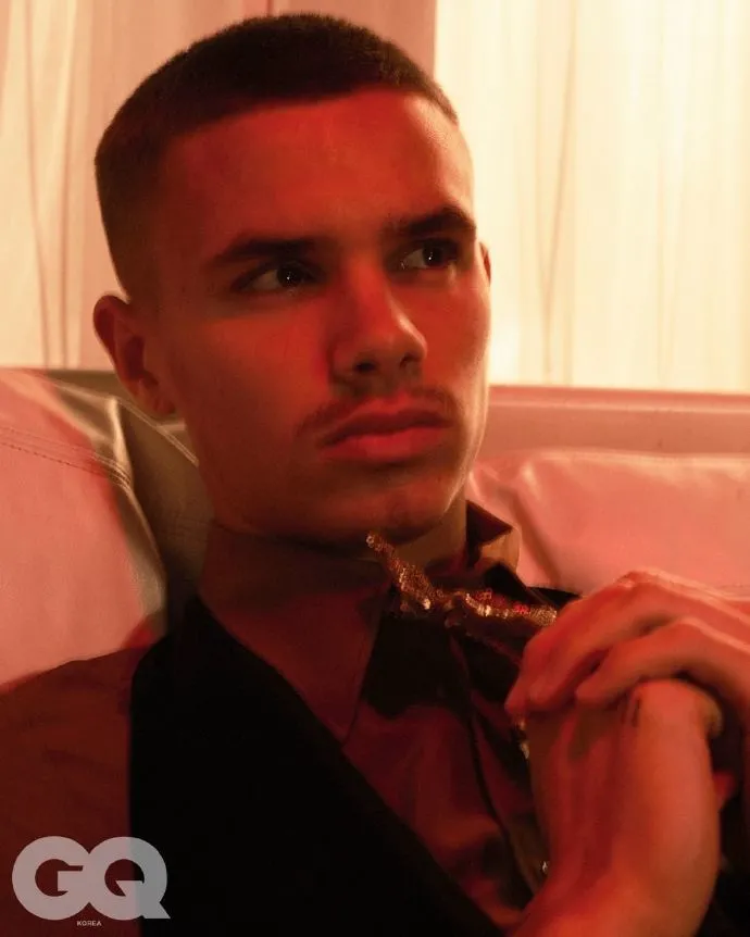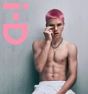 克鲁兹在《出体》杂志的拍摄中留着粉色寸头,赤裸上身,脱下他的巴黎世家牛仔裤,在镜头前露出一条亮白色的四角裤。