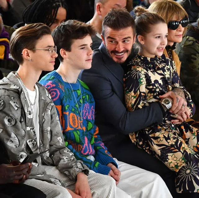 贝克汉姆拖儿带女去看秀,旁边的老三和小七虽然白得发光,但我的目光还是会被罗密欧吸引住。