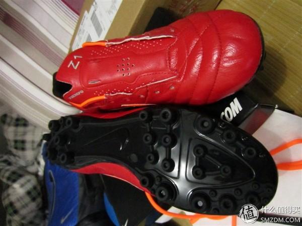 这时候如果有踢球的值友一定知道后来发生了什么悲剧。那就是....每次踢完一场球,后跟都会磨破皮。。。那时候也年轻,穿着FG的钉子在天朝的人草上放肆奔跑,可我硬是想了各种办法,把这最磨脚的鞋给征服了。后来慢慢的明白了,AG才是最适合天朝的场地的鞋底(当然其他品牌的鞋的叫法不一样,勿喷),于是入了一双刺客的AG,可舒适度太差。再后来又知道了袋鼠皮的鞋面穿着会更舒服,可问题就来了,当时市面上几乎没有AG+袋鼠皮的足球鞋组合,AG被一度定位是低端球鞋的大底(绝对的战略失误),袋鼠皮是被定位为顶级球鞋的鞋面,于是,今晚的猪脚登场了:NIKEID_Legend AG+袋鼠皮