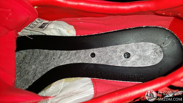 鞋垫与顶级款不同,不具备碎片状图案装饰,普普通通。43码(JP275)的球鞋鞋垫长度为27.5厘米,宽度为8.8厘米,尺码不偏。