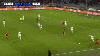 第85分钟,拜仁在前场抢断,皮球来到莱万脚下,他在弧顶处脚后跟妙传,萨内插上拿球,在禁区左侧小角度打门得手,拜仁7-1领先萨尔茨堡红牛。