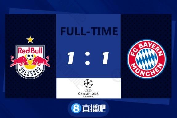 全场比赛结束,最终拜仁1-1萨尔茨堡红牛。
