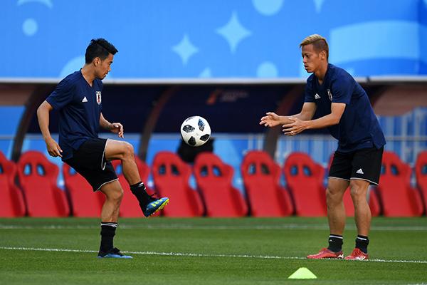 2018年6月18日,日本队训练备战。 本文图片均来自 视觉中国