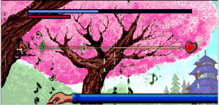 虽然游戏难度逐渐增加,但游戏制作者还是给“手残党”提供了“极简”和“按了就中”的难度选择,并且这款游戏总能用最适合的叙事手法让玩家接受玩法。第三幕的 BOSS 关卡中,一条固定音轨节拍波形反向前进,另外三条音轨交换出现,如此折磨的玩法被制作者包装成医务人员劳累的日常生活的还原与倾诉。