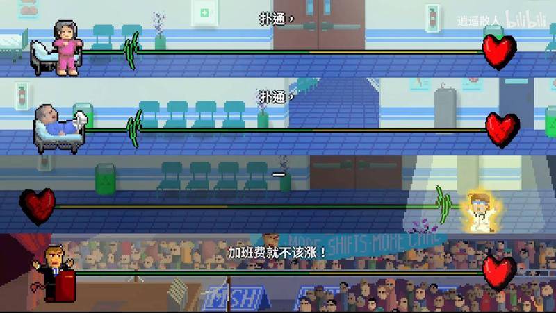 到了关卡最后,只剩下医生这条音轨,孤独忙碌的日常被歌词吐露出来,据说这一部分不管玩家怎么按都能达标。