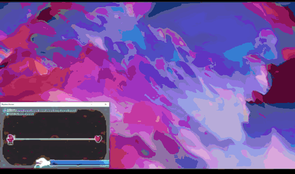 这些打差评的玩家还没能感受到之后关卡的可怕,第二幕 BOSS 关卡中,游戏窗口直接被缩小,中期不断在玩家的电脑屏幕中颤抖、游动、闪现,到了最后游戏窗口干脆横着跑了起来,画面干扰性极强。因此,许多玩家参透了游戏过关奥秘——闭着眼睛玩,不过到了第三幕,闭着眼睛也无济于事了,因为节拍不同、有缺失的音轨被增加到了三条。