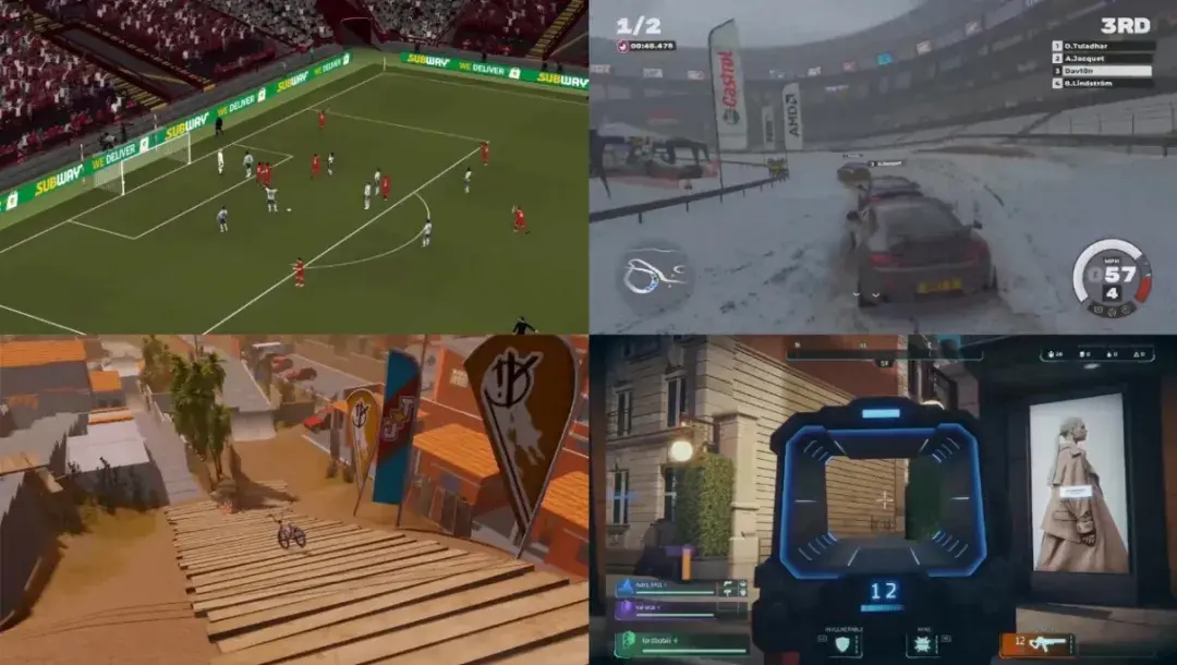针对这类游戏内的虚拟物料广告,甚至已经诞生了专门的平台,Bidstack就是这样一个游戏内广告的竞价投放网站。根据他们官网的介绍,除了《足球经理》的场边广告和球衣广告,他们还与《尘埃》等不少游戏都有过合作,还能把广告做进赛道边的广告旗和开放世界游戏的橱窗里。
