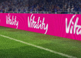 2017年,与AR、绿幕有些类似的“虚拟替换技术”率先登陆英国赛场。通过事先捕捉广告牌在镜头中的位置,可以替换掉广告牌中的内容。再根据转播方地区的差异,投放不同内容的广告,以更高效地吸引看比赛的观众。