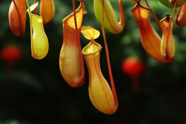 猪笼草有“昆虫杀手”之称,这种植物原产于东南亚和澳大利亚的热带地区,为多年生藤蔓植物。猪笼草最吸引人的地方便是其独特的营养吸取器官——捕虫囊,它的样子酷似1个瓶子,里面有可用来消化虫体的黏液,一旦虫子误入瓶口,便会成为猪笼草的美餐。有意思的是,我们所看到的猪笼草叶子,其实,只是它的叶柄,真正的叶子,则是叶柄末端形成的这种瓶状捕虫器。正是有了这种奇异的叶笼,猪笼草成了最受人们青睐的一种观赏食虫植物。