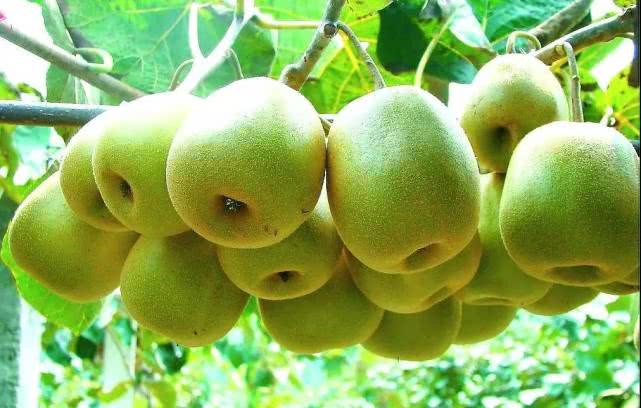 猕猴桃是一种落叶藤本植物,其小枝幼时密生灰棕色茸毛,老时逐渐脱落。叶片为圆形、卵圆形或倒卵形,叶顶端突尖、微凹或平截,叶缘有刺毛状细齿。其花乳白色,后期变黄。椭球形或卵形的浆果外被棕色绒毛,猴子特别爱吃。猕猴桃花大美丽,芳香四溢,是良好的棚架材料,既可观赏又可产生经济效益。