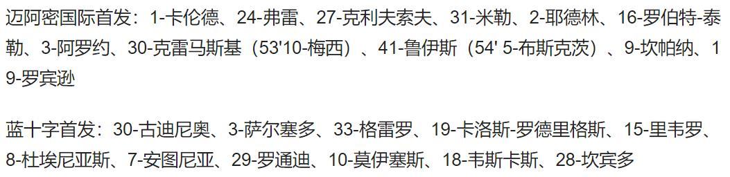 最终,全场比赛结束,迈阿密国际2-1战胜墨西哥蓝十字。