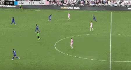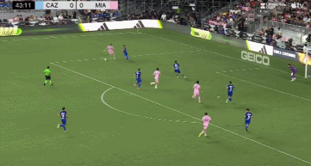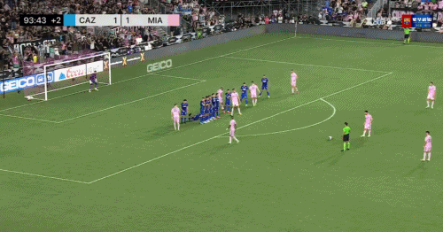 1分钟后,梅西带球来到弧顶处,虚晃一下传给马丁内斯,后者再横传梅西,可惜门将出击断下了梅西的射门。第93分钟,梅西在弧顶前拿球遭到对手两人包夹犯规,为迈阿密国际赢得禁区前位置极佳的任意球。