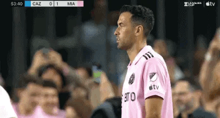 迈阿密国际进球后,替补席上的梅西起立并振臂高呼,为队友加油。上半场结束,迈阿密国际暂时领先。