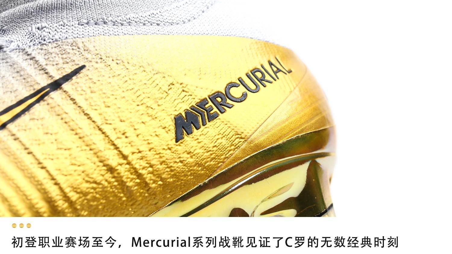 与去年耐克为C罗推出的金球奖限量战靴相同,全新Mercurial Superfly V CR7 FG “Quinto Triunfo”足球鞋同样采用象征奖杯与荣誉的金色设计。无论是鞋面还是电镀大底,象征奖杯与荣誉的金色元素会让你想到C罗所捧得的5座金球奖奖杯。