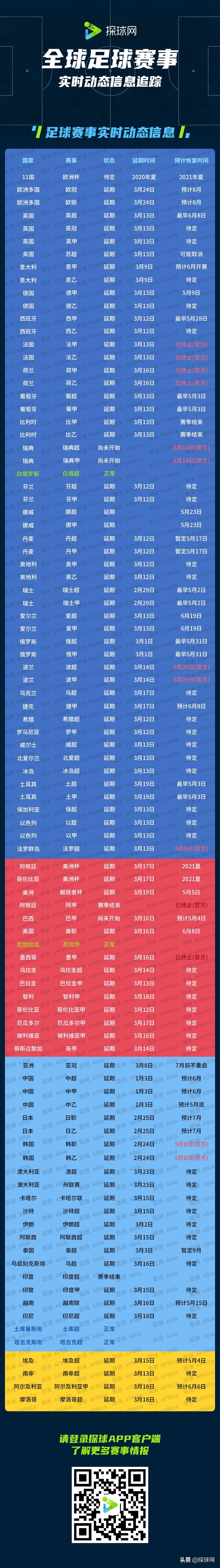 以上是探球网app整理的全球足球赛事最新情报显示,5月已经有部分球赛可以观看,预计将在六月逐渐开始恢复,虽然足球联赛复赛将严格遵守公共卫生规定,观众将不能到现场观看比赛。但“能够在荧幕前享受比赛。”已经是广大球迷朋友期待已久的快乐,希望球迷能够在现场支持自己球队的时刻尽快到来。(更赛事多情报请即时关注探球网)