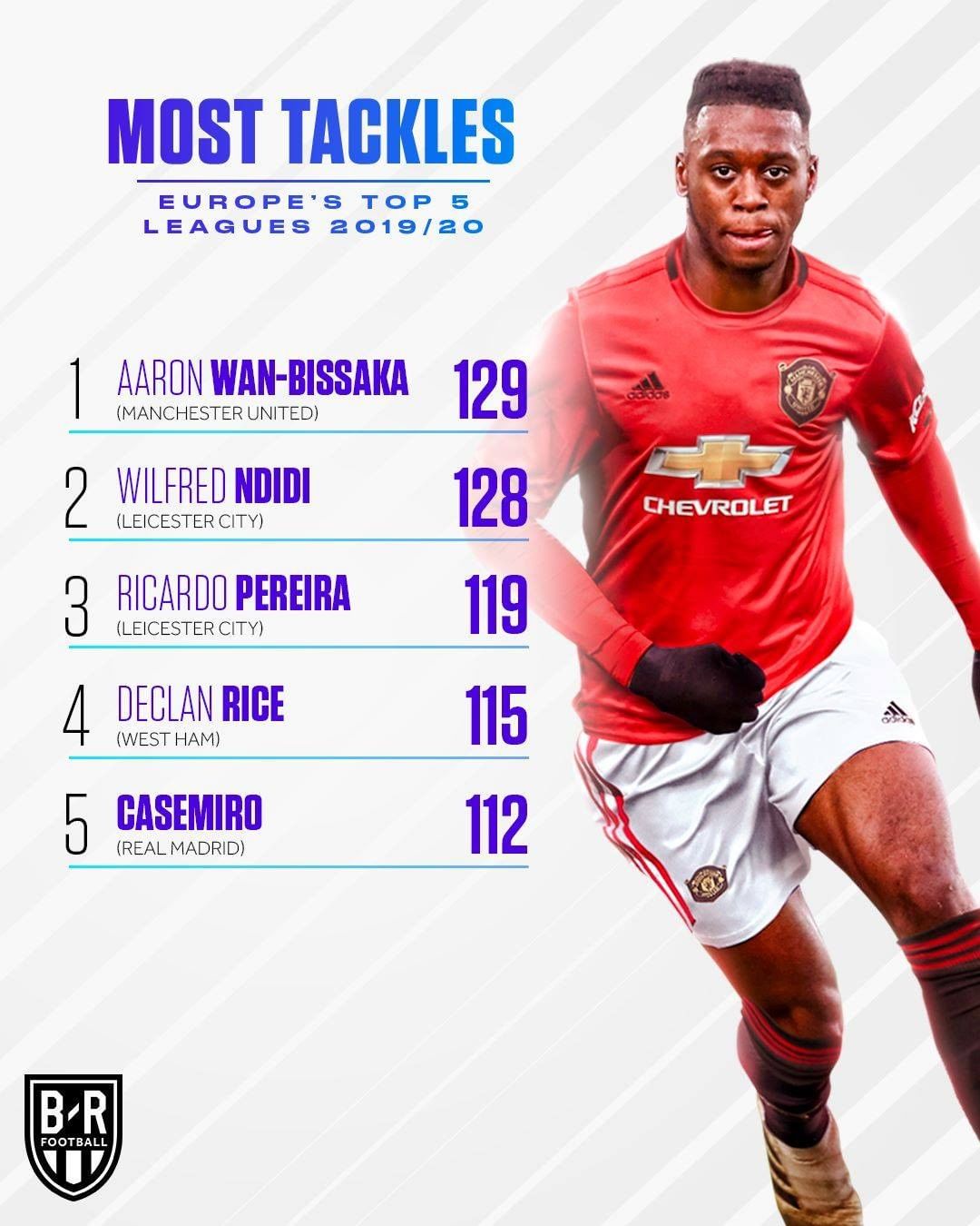 而在抢断中,曼联新援万-比萨卡贡献最多,他本赛季完成了129次抢断,排名第二的莱斯特城的恩迪迪,为128次。后面分别是佩雷拉的119次,莱斯的115次和卡塞米罗的112次。可以看到英超球员在这项数据上占据了绝对的优势,可见英超身体拼抢的激烈。