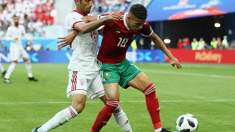 开场后,摩洛哥队占据明显优势,频频利用两翼发动攻势,右路的诺·阿姆拉巴特极为活跃,贝尔汉达、卡比的攻门颇具威胁。第19分钟,摩洛哥队在伊朗队禁区内制造混乱,贝尔汉达、贝纳蒂亚等人的射门均被挡出。