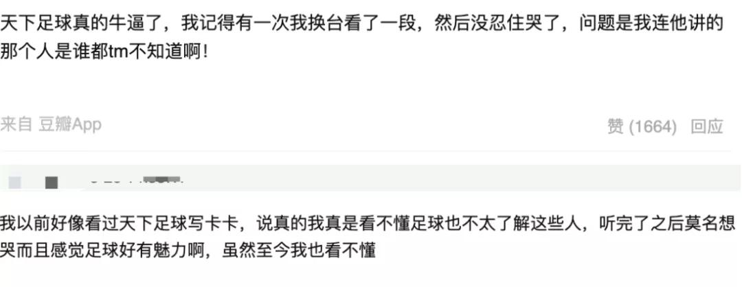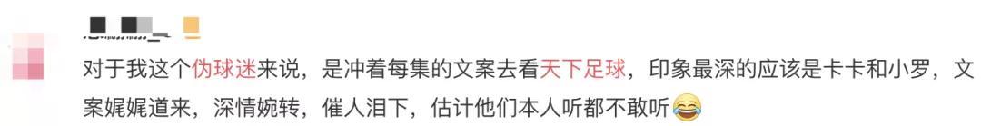 只是这届年轻人不再被《天下足球》的鸡汤文案所吸引,觉得“有点矫情和过时”。