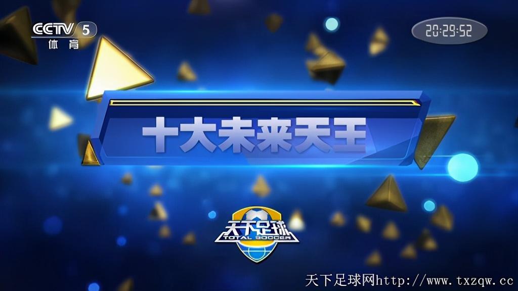 因为对国外几大联赛的好奇,央5借此打造了《天下足球》,这档专门报道国际足坛最新赛事,每周一晚上七点半准时开始。