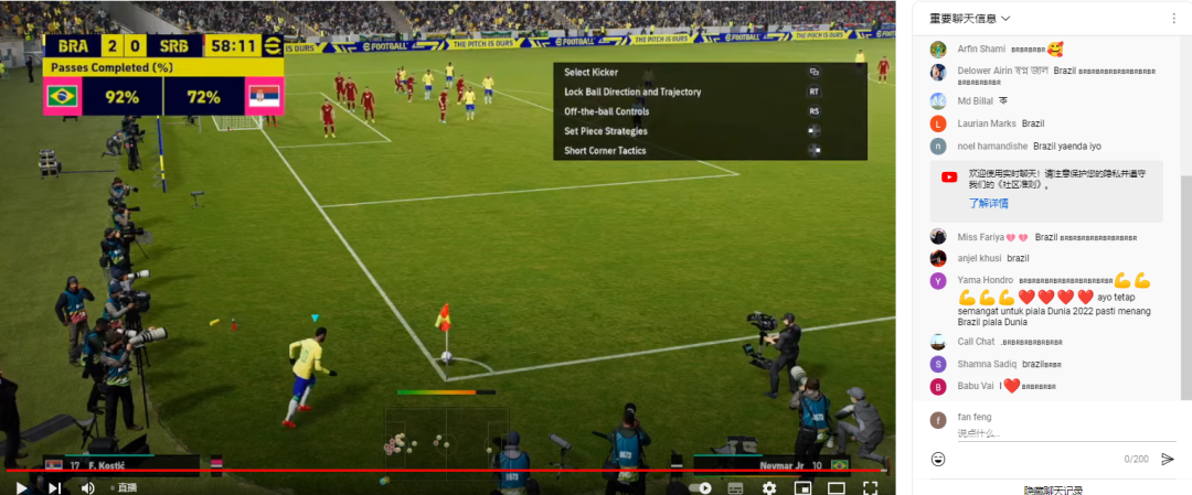 不过真要将足球游戏的二创性质发挥到极致,还得是最近这些“转播”卡塔尔世界杯的频道博主们——那个最早被拉到TikTok上“处刑”的油管频道,其实压根没有停下“live”的脚步。