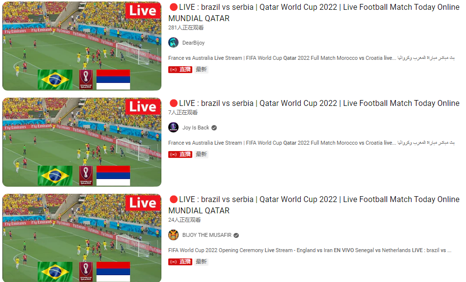 一部分网友被频道背后操控者的遮遮掩掩给逗乐了,还有人则对那些上了当的“伪球迷”身份被戳穿感到好笑。而事实上这样的情况当然也并不少见,至少在Youtube上,即便类似的“造假”在揭穿后受到了一定程度的影响,但所谓的“世界杯live”频道还正在纷纷“崛起”。