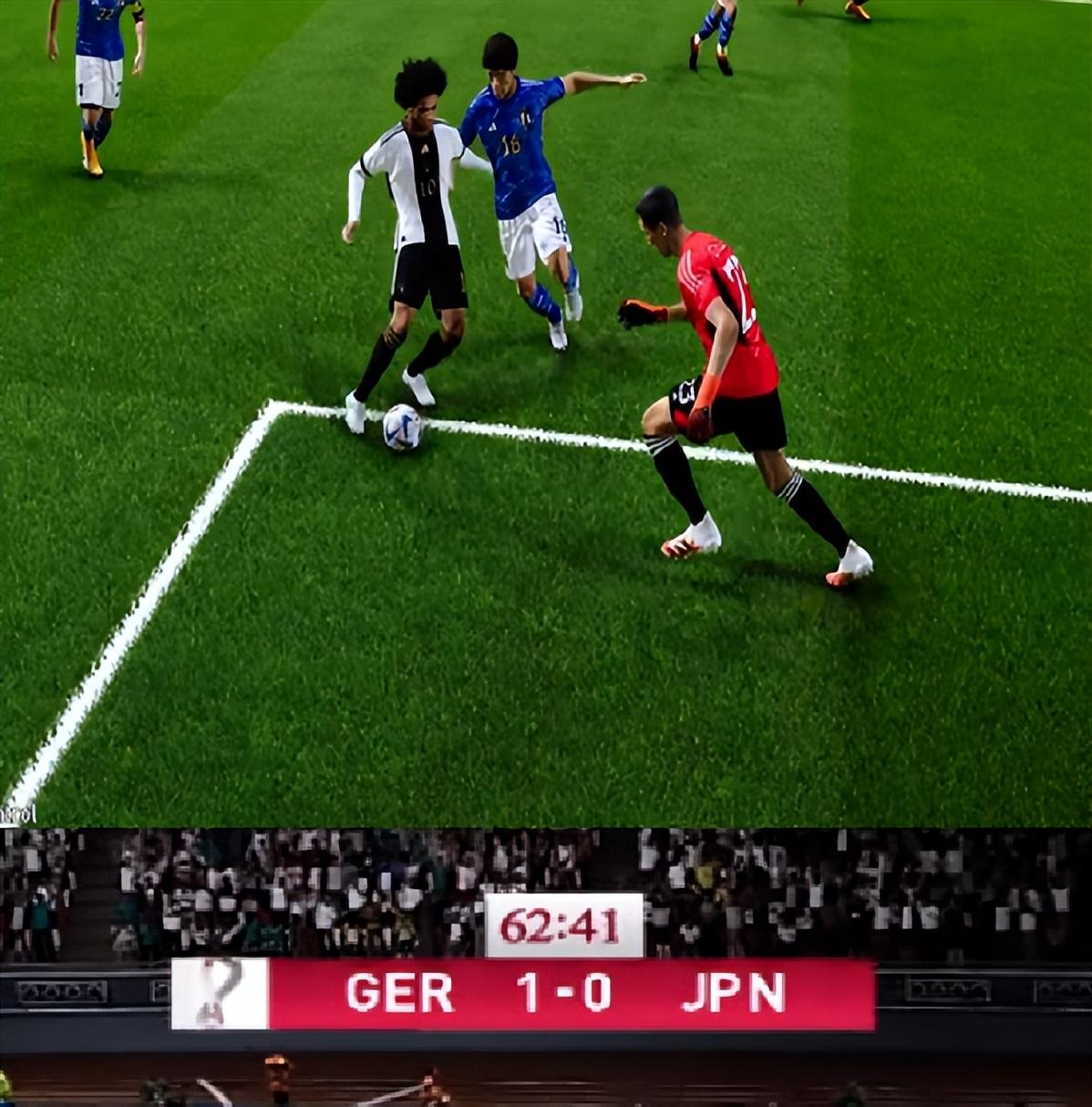 但问题在于,很多人也并非真就用了心。11月23日晚,日本爆冷2:1击败德国,网上就出现了不少相关视频。Youtube上有一个9分钟的“德日大战高光集锦”,从标题到详情再到Tag,没有一处与游戏相关,一晚上播放量已经超过60万。至于视频内容,自然是这场“亚洲之光”闪耀过程的《实况足球》版。