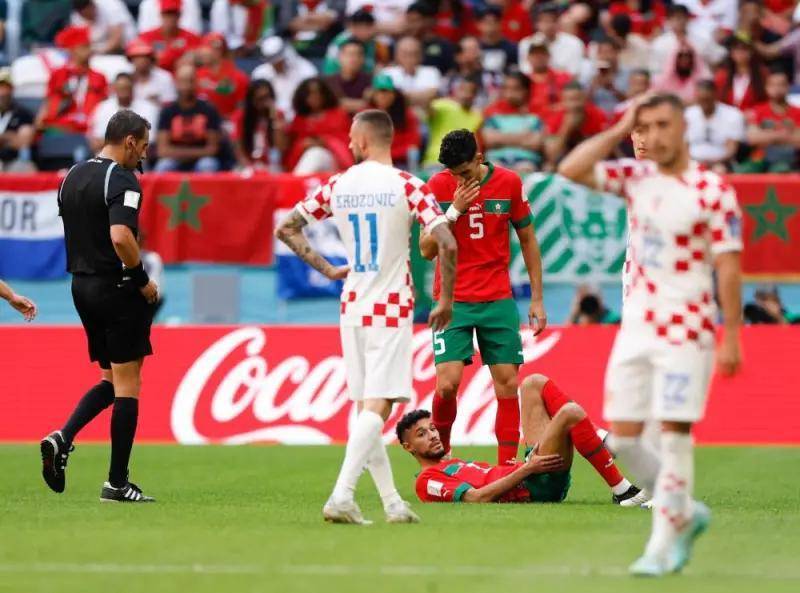 与此同时,比赛中弥漫的气氛也是悲壮的。经过前6场比赛的巨大消耗,双方都已弹尽粮绝。尤其是摩洛哥队,在比赛中连续出现伤情,本届世界杯四名中卫全部拼到伤退。