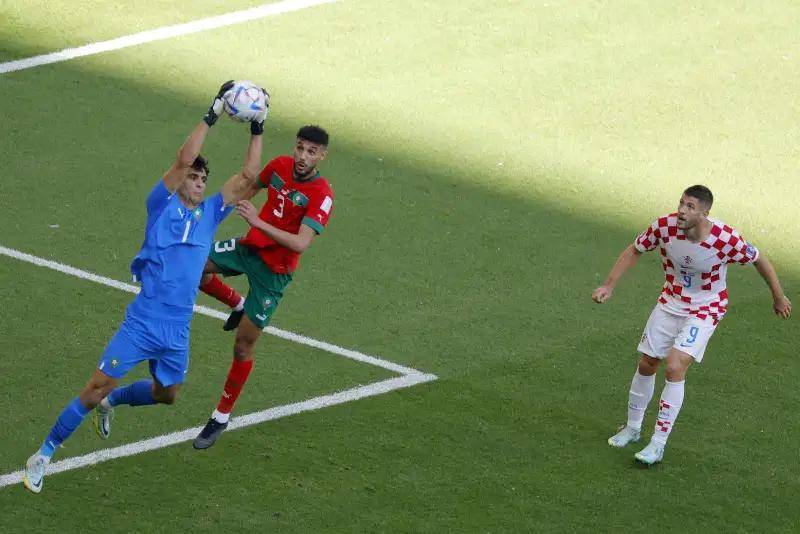 但克罗地亚在前场缺乏有对抗能力的支点,吸引对方防守力量,给队友制造纵深空间。出任单中锋的克拉马里奇缺乏力量和高度,面对摩洛哥的双高中卫完全没有对抗能力。两侧佩里西奇和弗拉希奇身体状态不算太好,面对阿什拉夫和马兹拉维也没有速度优势,难以用突破制造纵向空间,中场的几名二排攻击手也就无法插上,球队只能依赖定位球对摩洛哥门前形成一些威胁。