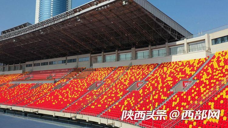 陕西省体育场“柏林蓝”跑道搭配红黄相间座椅