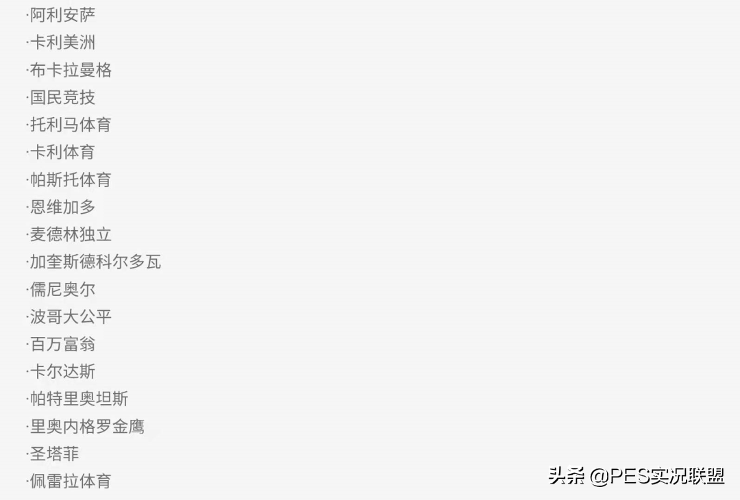 如果玩家将下列俱乐部设置为基础球队,则需要在更新后选择其他球队;