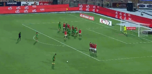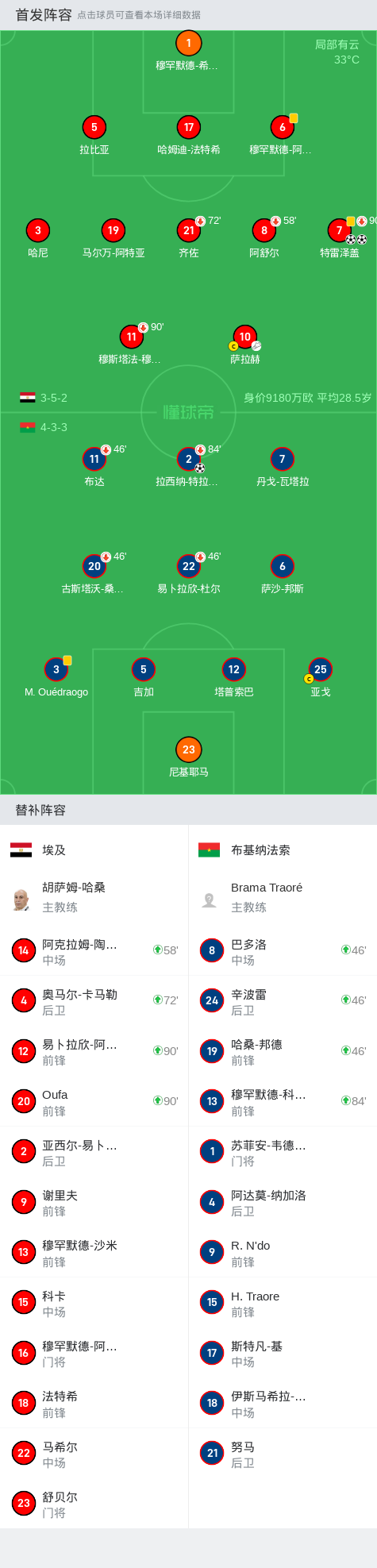 第33分钟,萨拉赫战术任意球直接攻门,尼基耶马双手将球挡出