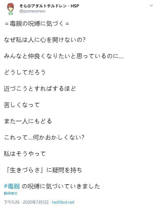 也希望被有毒父母的诅咒纠缠的人们,能够挣脱束缚,积极地寻求帮助,明白一切都不是自己的错,活出自己没有阴影的人生。