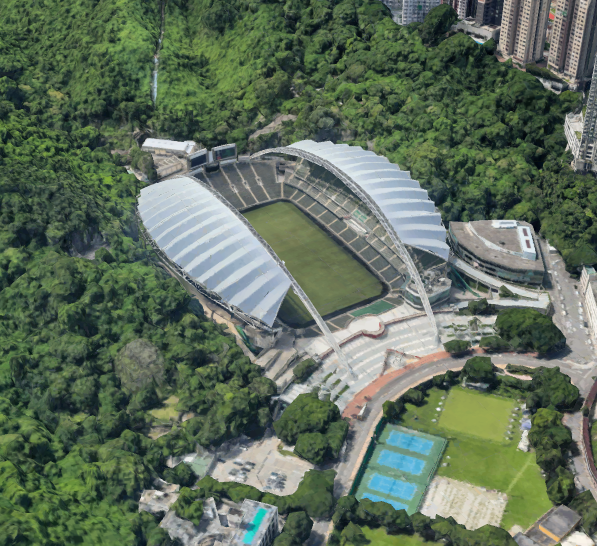 香港很多球场都是硬质铺装,尤其是部分社区球场,既不是人工草,也非天然草坪;这并不是说不能用草坪,而是因为土地少,为了提高利用率,一个场地需要承担多种功能。跑马地的旁边就是香港大球场Hong Kong Stadium,这里除了主球场,周边也有很多没有看台的业余场地。