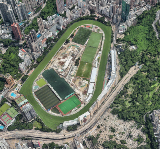 跑马地大家在影视作品里也经常看到,外围一圈是马道,中间有几座球场。
