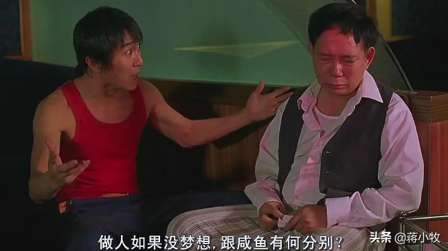 《少林足球》中,描写的都是一群小人物的奋斗历程,其中也包括了星爷自己,我想大家都应该记得那一句话:“做人如果没有梦想,那跟咸鱼有什么区别! ”曾几何时我们也像那条咸鱼一样被人否定,但咸鱼也有翻身之日,更何况人呢。