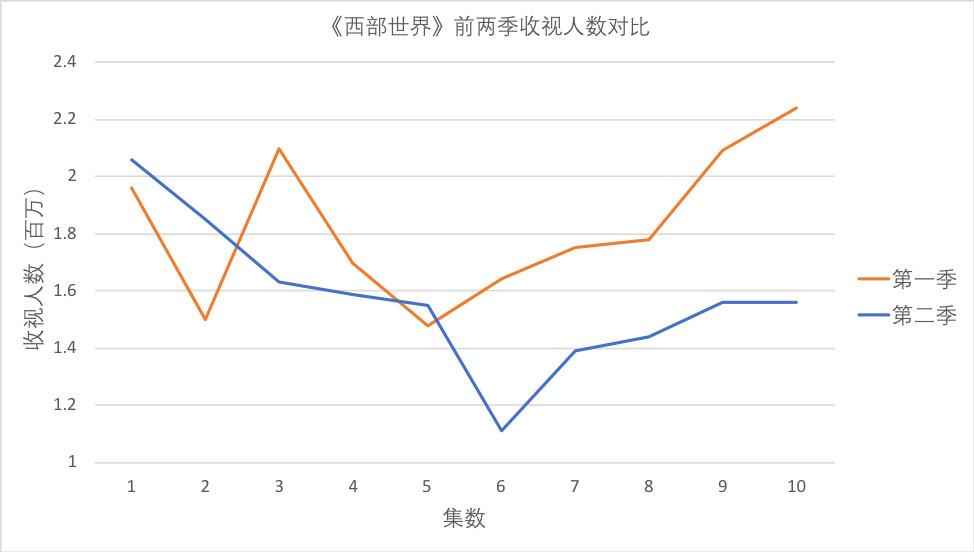 《西部世界》第二季第10集会破天荒地杀死这么多角色,也许并不只是为了戏剧效果。这一集的收视率比第一季下降了30%,这显然远低于 HBO 的预期。