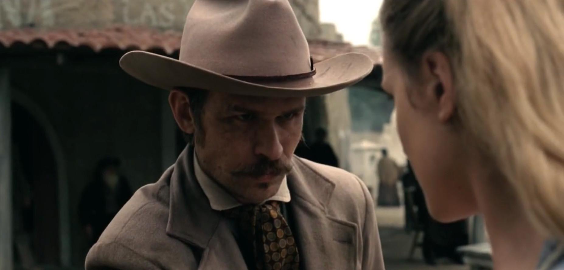这一场戏发生在S1E04,当斯塔布斯得知“甜水镇农场主的女儿”脱离了故事线之后,他命令手下留意她的行为,并将德洛丽丝带回故事线。接下来的镜头就切到了刚刚来到 Las Mudas 的德洛丽丝,一个声称是寻找“农场主女儿”的人出现,想要将她带走。