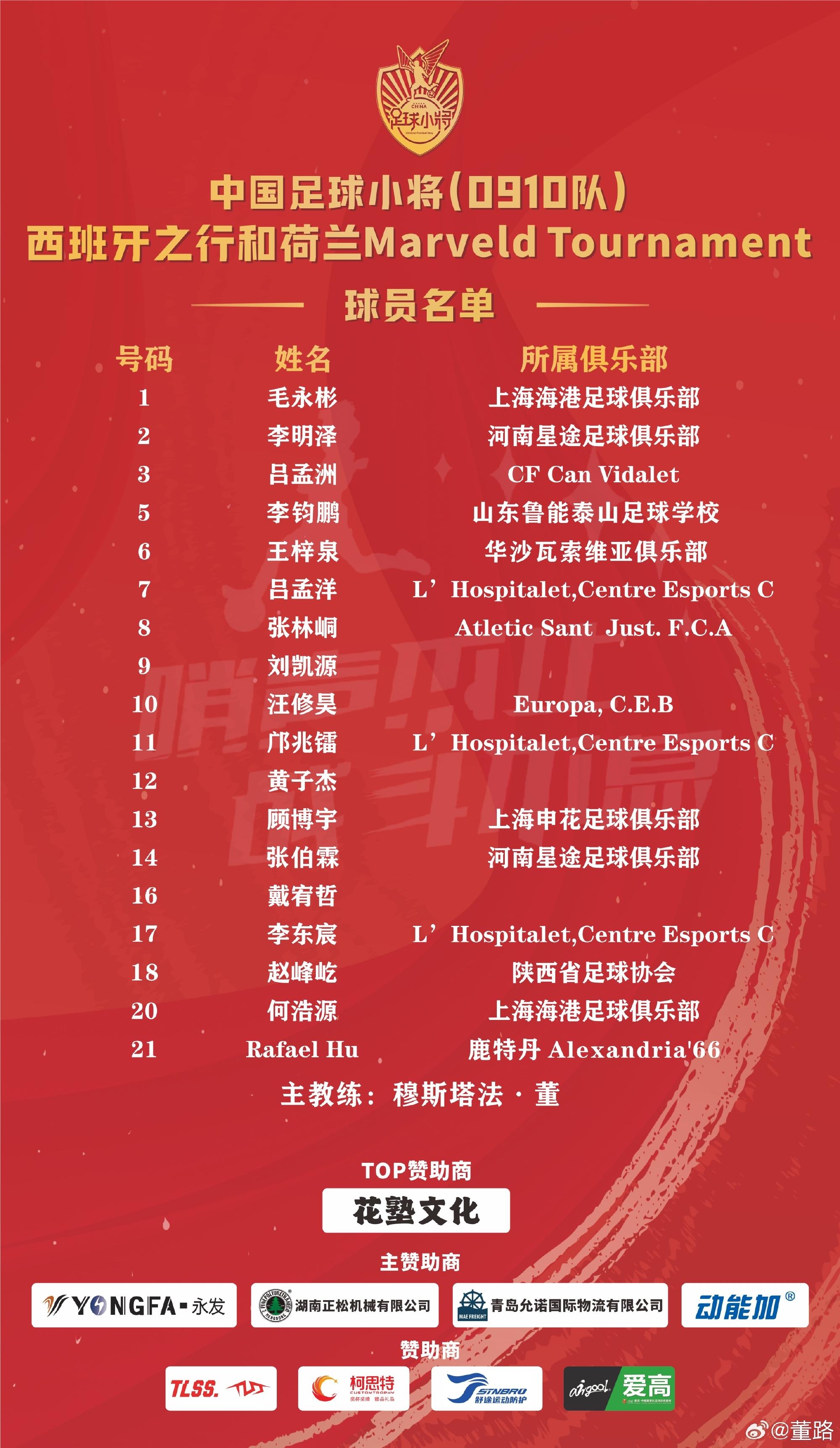 此前董路曾在3月时透露,足球小将U15队将于5月出访西班牙,并在5月21日对阵西班牙人U15。除此之外,球队计划在此次约战的对手还有达姆、巴萨和赫罗纳等队的梯队。