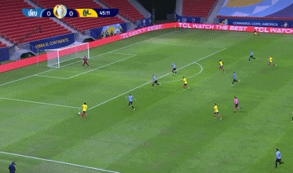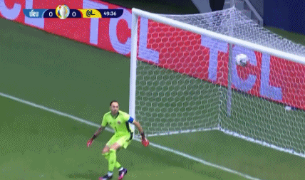 第50分钟,南德斯右路传中,奥斯皮纳单手将球托出,但后退时头部撞倒立柱。幸好,这位哥伦比亚门神并无大碍。