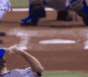 如上图,拿着球棒的打者面对飘忽不定的棒球,最终傻眼。