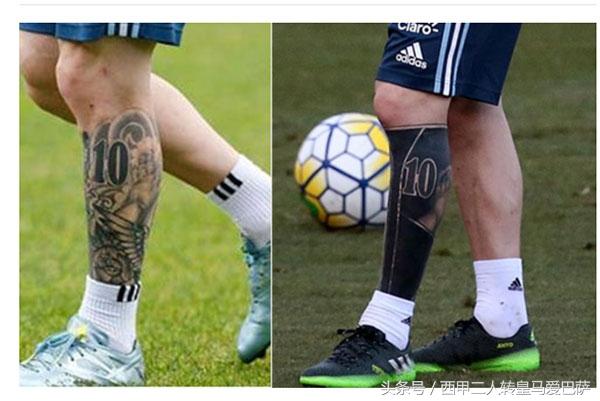 近期梅西的新纹身令球迷感觉震惊。阿根廷人几乎将左小腿全部涂黑,只留下10这个数字以及他儿子蒂亚戈的小手的图形。在足球运动员中,纹身已是司空见惯,但即便如此,仍有一些图案令人感觉触目惊心。