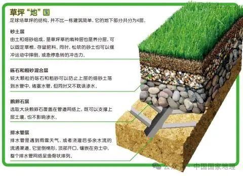 而从地理上讲,各个足球场所处的纬度高低不同,冷暖干湿各不相同,选择草坪草也会因地制宜——通常以35°纬度线为界限,分别种植冷、暖两种类型的草坪草。