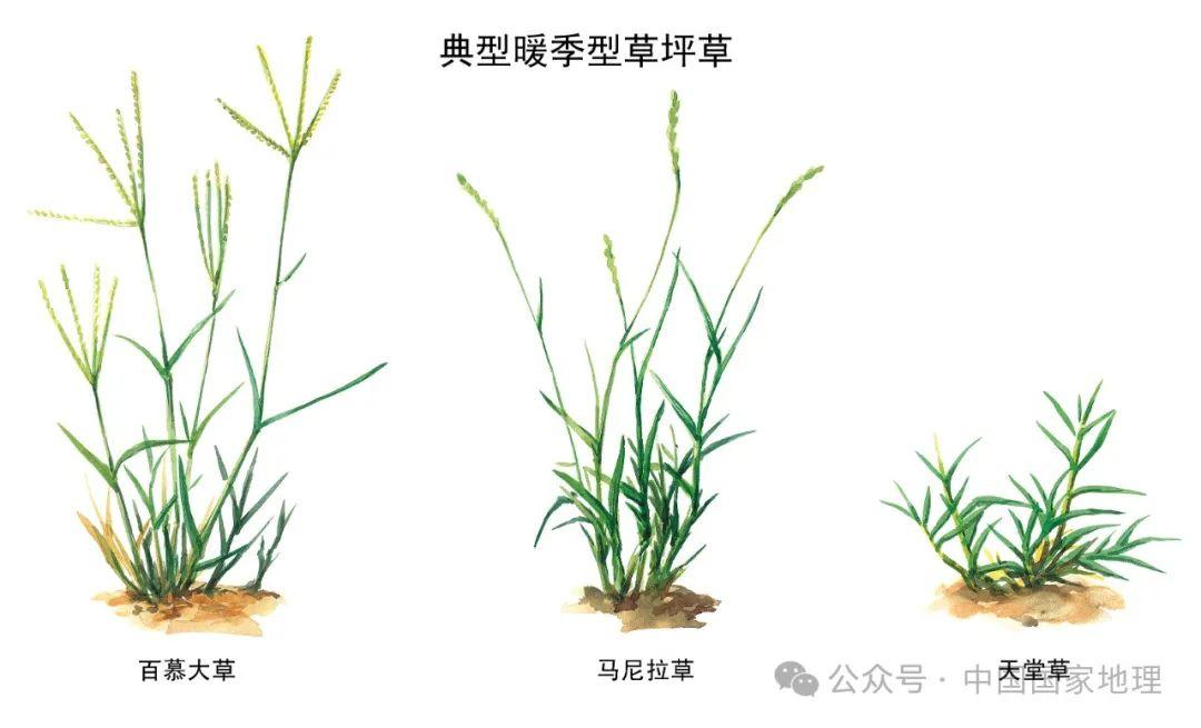 而纬度低于35°的地方,主要播种暖季型草坪草,从它们的名字就知道来自于热带:马尼拉草、百慕大草……它们大都繁殖快、寿命长,暴晒也不会打蔫。