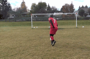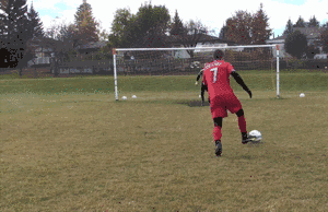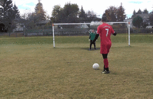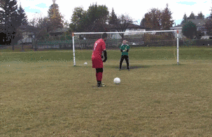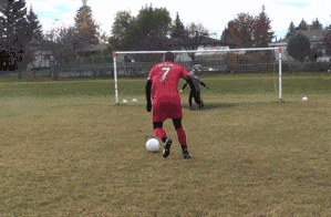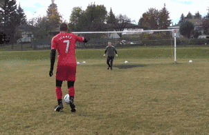 最好在与对手门将距离5码处出脚。太近的话容易被对手门将封死角度,太远的话有可能射偏球门。