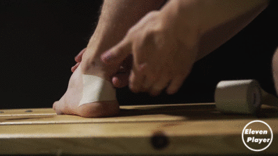 如果你必须要去踢比赛时你可以用一点胶装后跟帖绷带。在贴之前先放在双手掌心把它捂热。可能会有那么一点疼但这就是适合的方法。